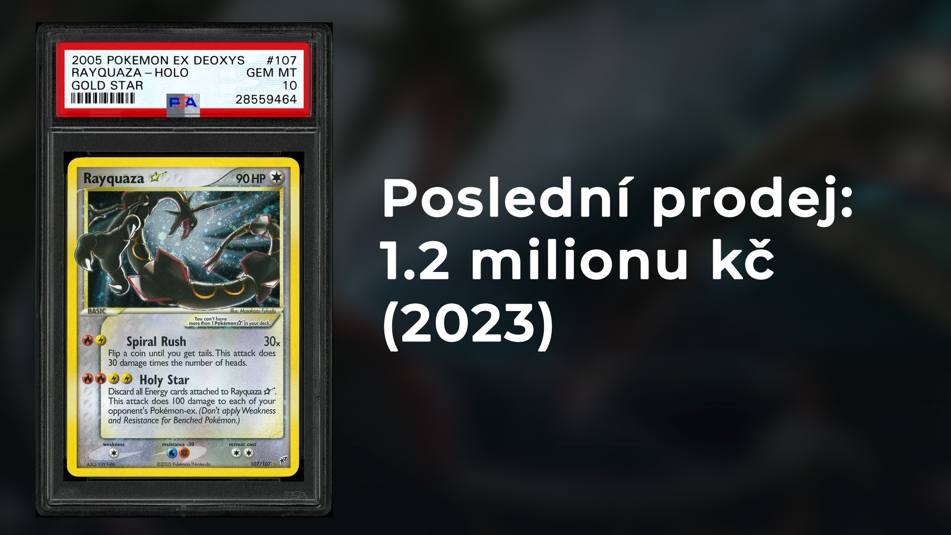 Goldstar Rayquaza v PSA10, pouze 47 kusů na světě. Prodej je z roku 2023