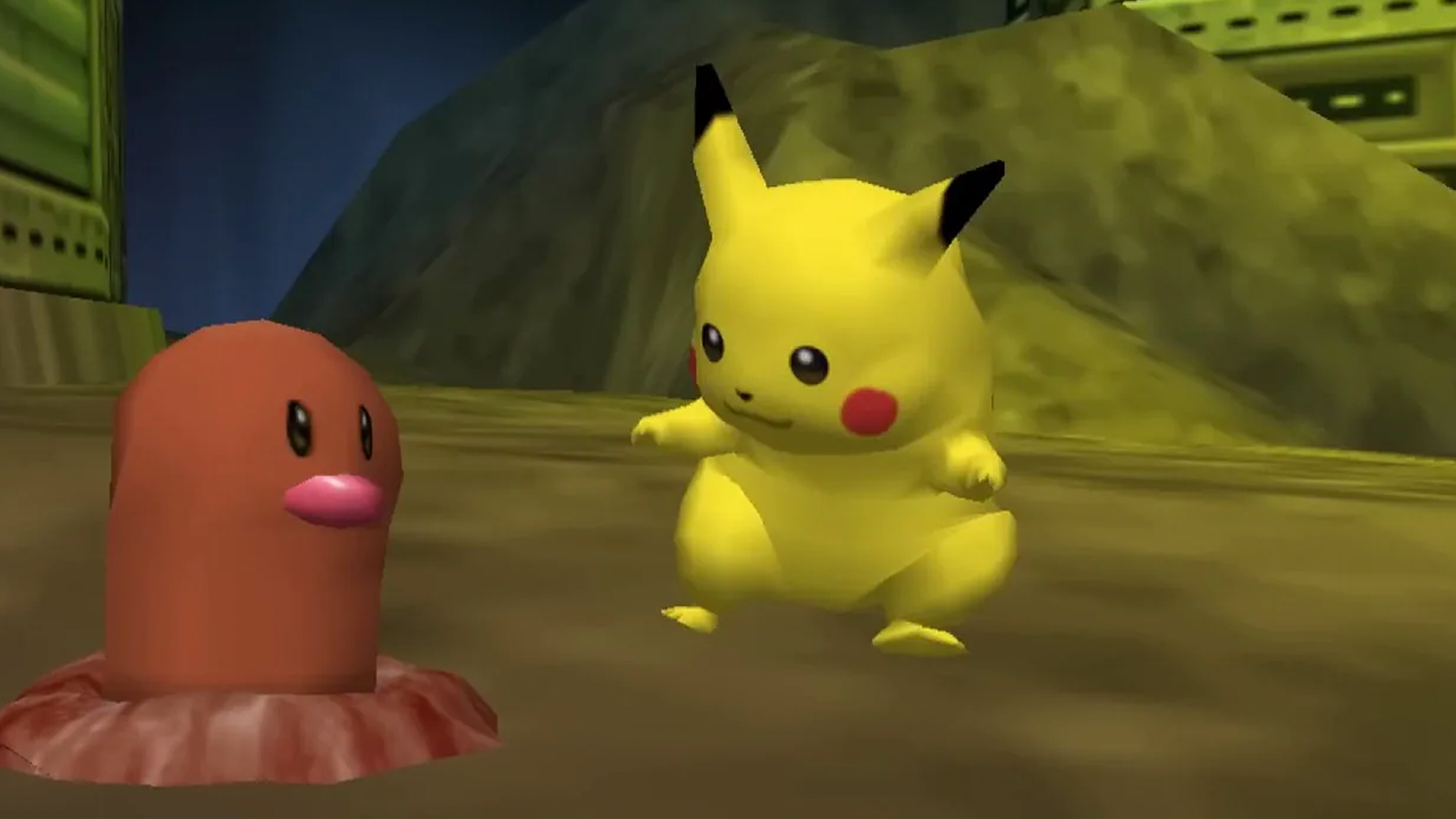 Pikachu a Diglett přímo ze hry Pokémon Snap (konzole Nintendo 64)